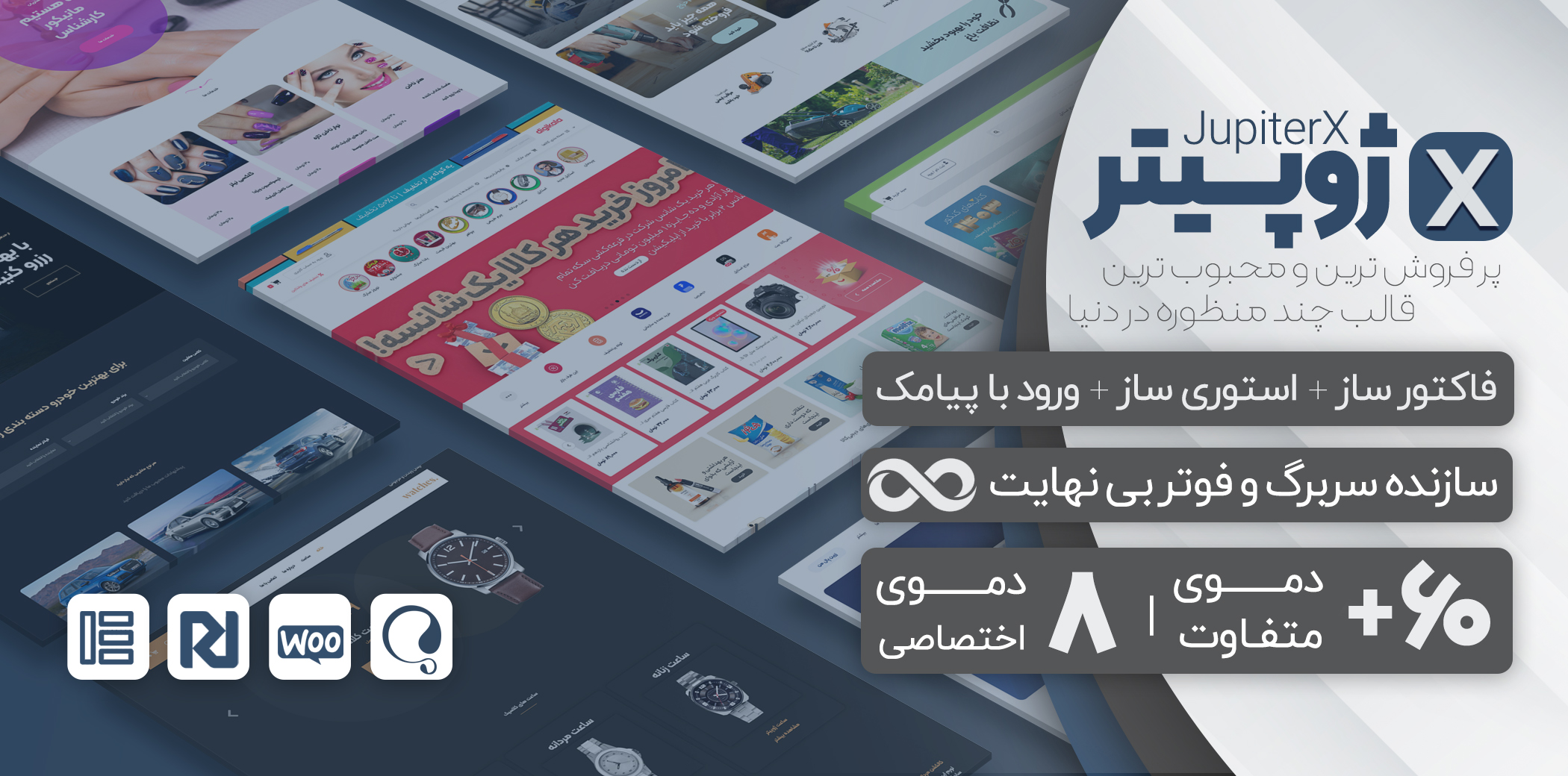 در این مطلب سعی شده است تا به معرفی قالب ژوپیتر پرداخته شود. قالب jupiterx پوسته ای زیبا و کاربردی است. این قالب تنظیمات تفکیک شده و بسیار حرفهای برای هر صفحه از وب سایت شما اراﺋه میکند و به این صورت می توانید برای هر صفحه از وب سایت تنظیمات جداگانهای اعمال کنید. در ادامه به آموزش قالب ژوپیتر میپردازیم.