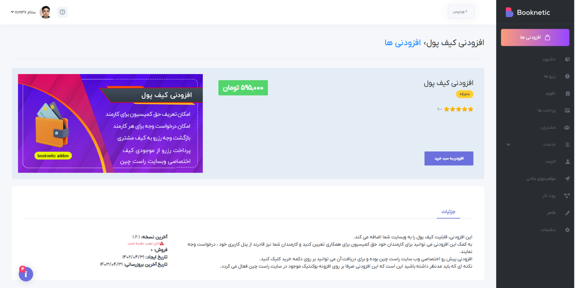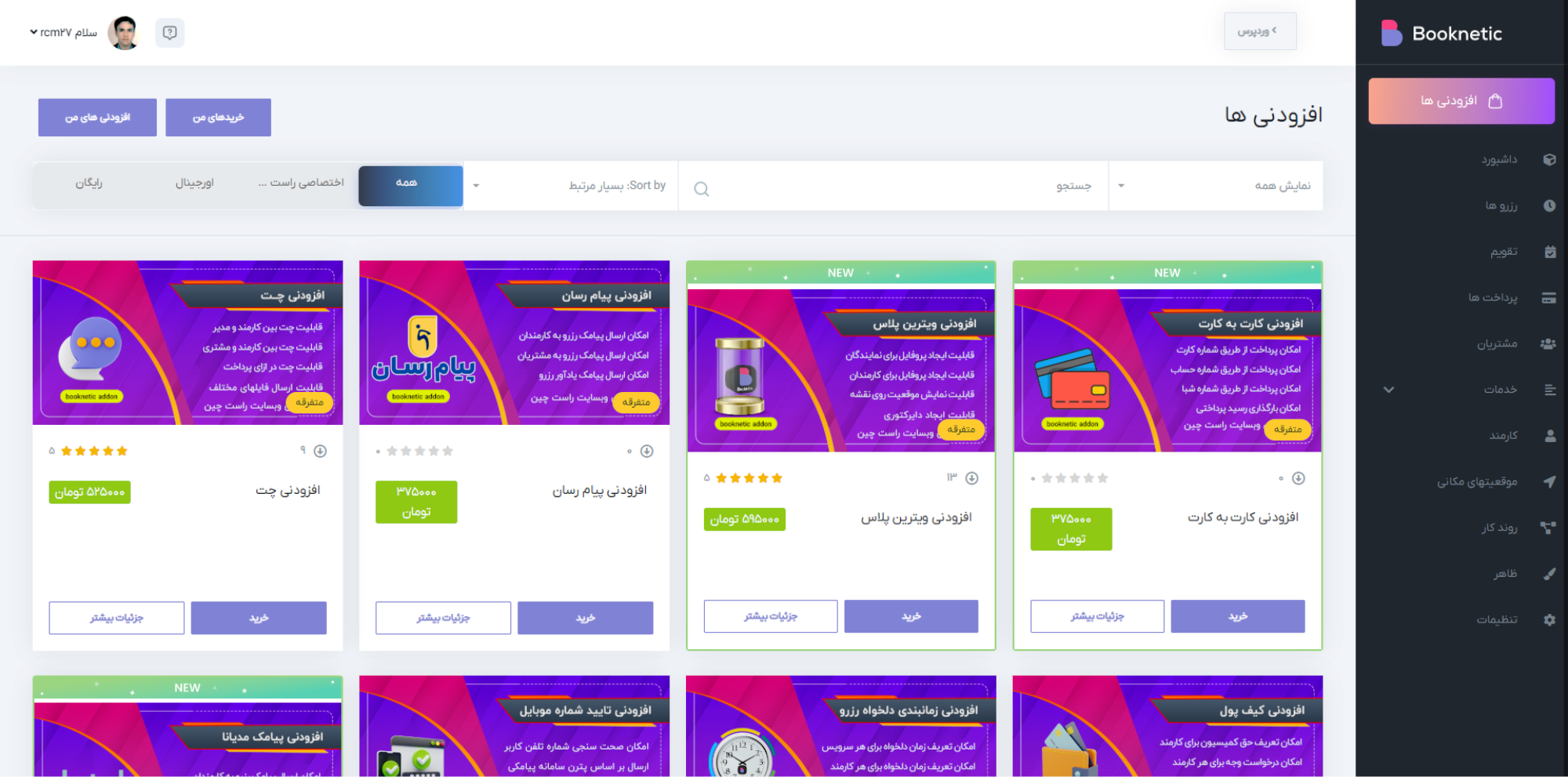 افزونه Booknetic یک افزونه نوبت دهی و رزرواسیون با امکانات کامل است. با خرید افزونه بوکنتیک از راست چین از پشتیبانی و آپدیت دائمی محصول بهره مند خواهید شد.