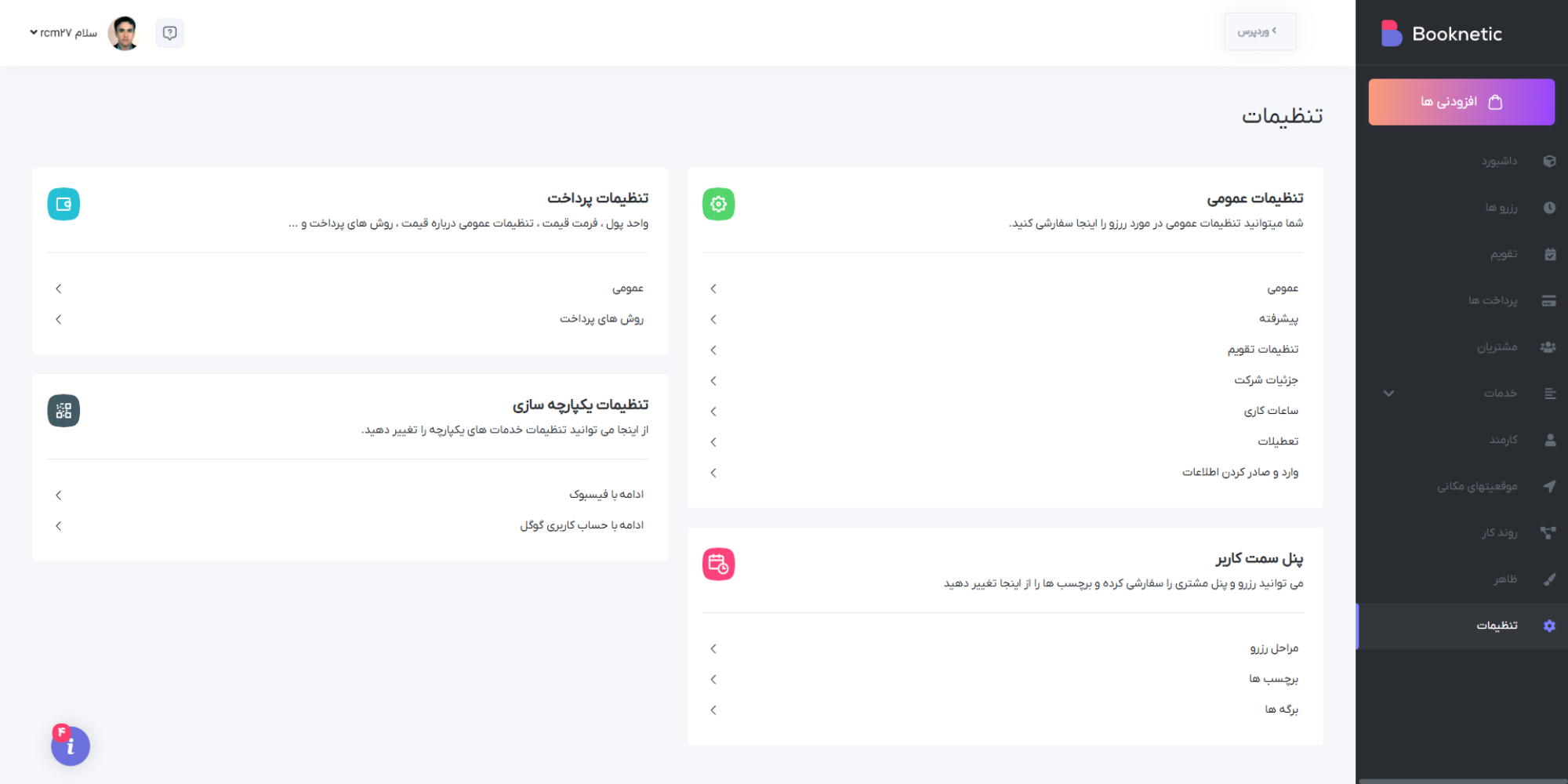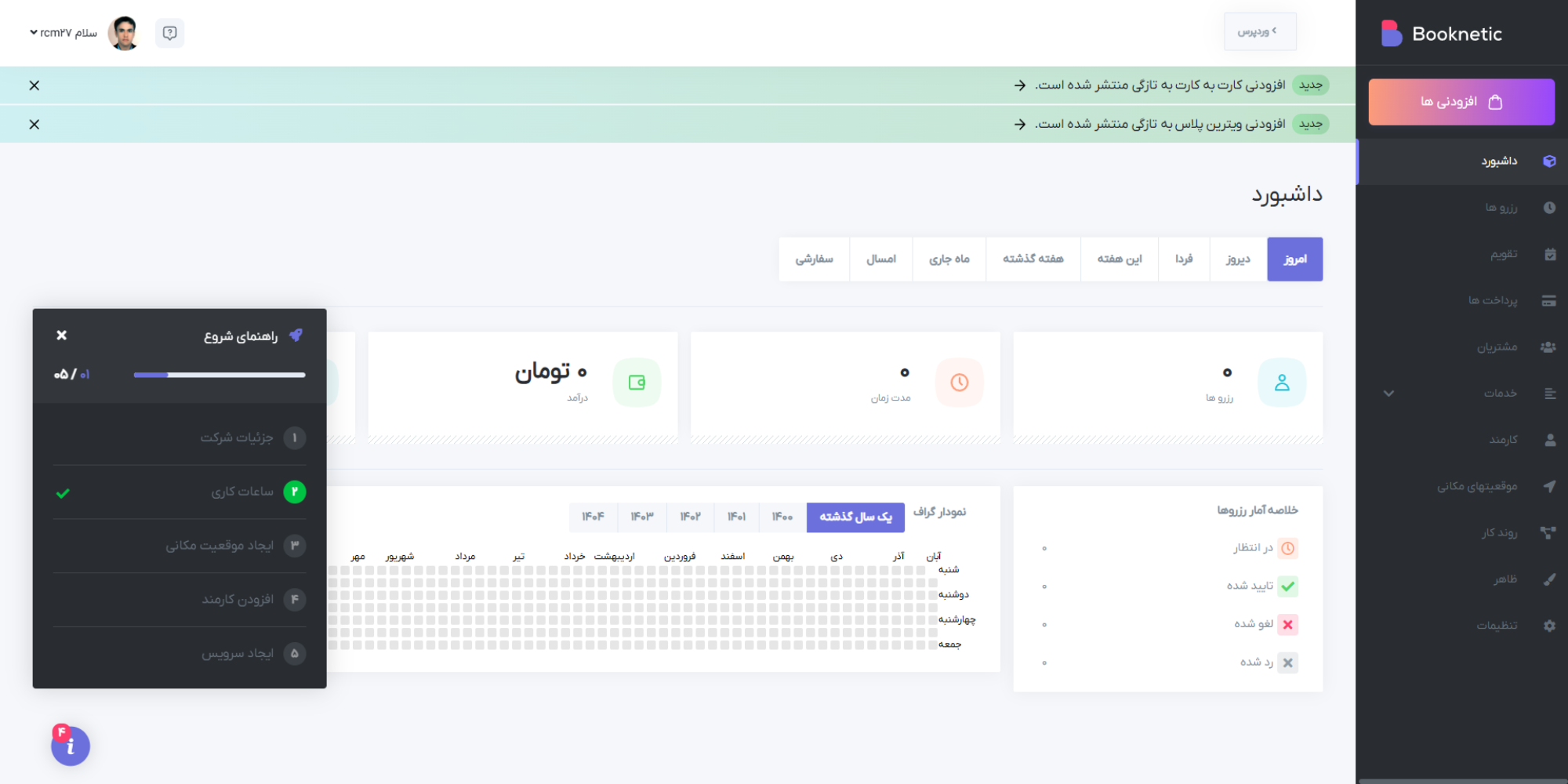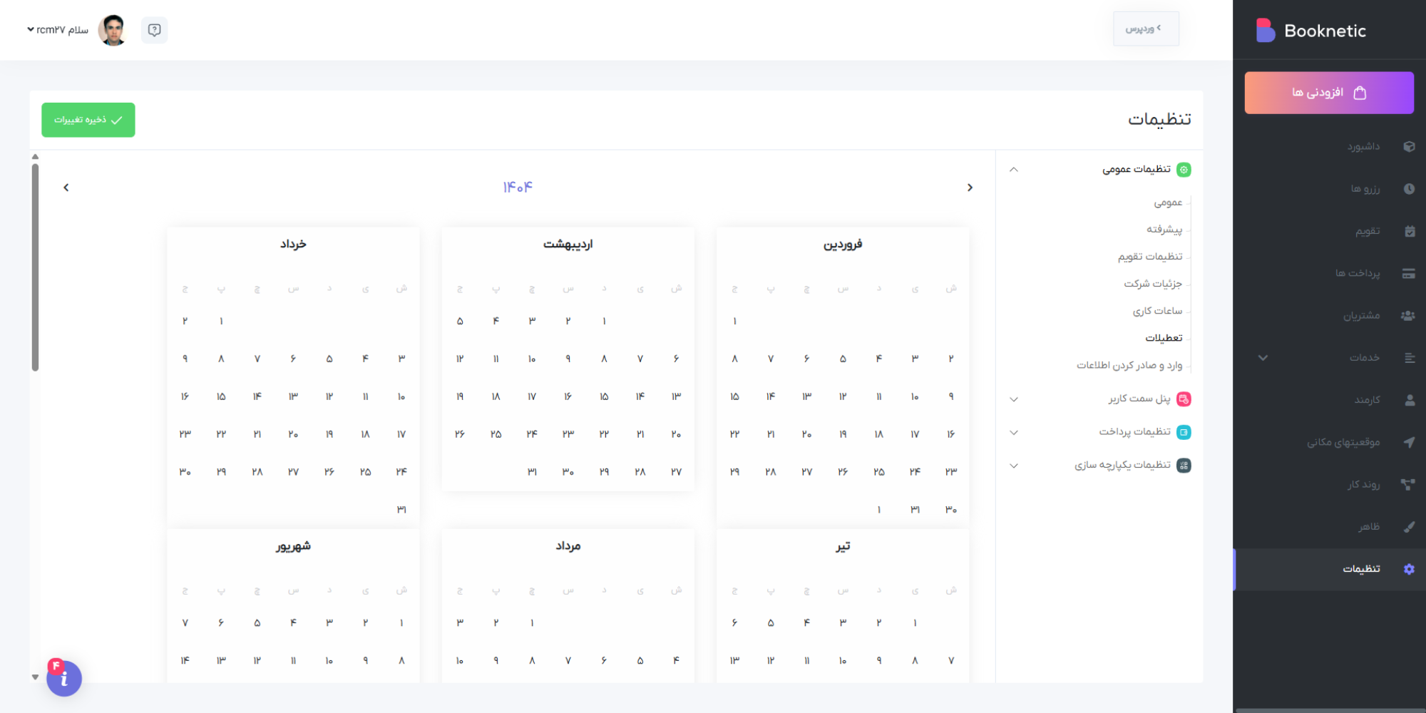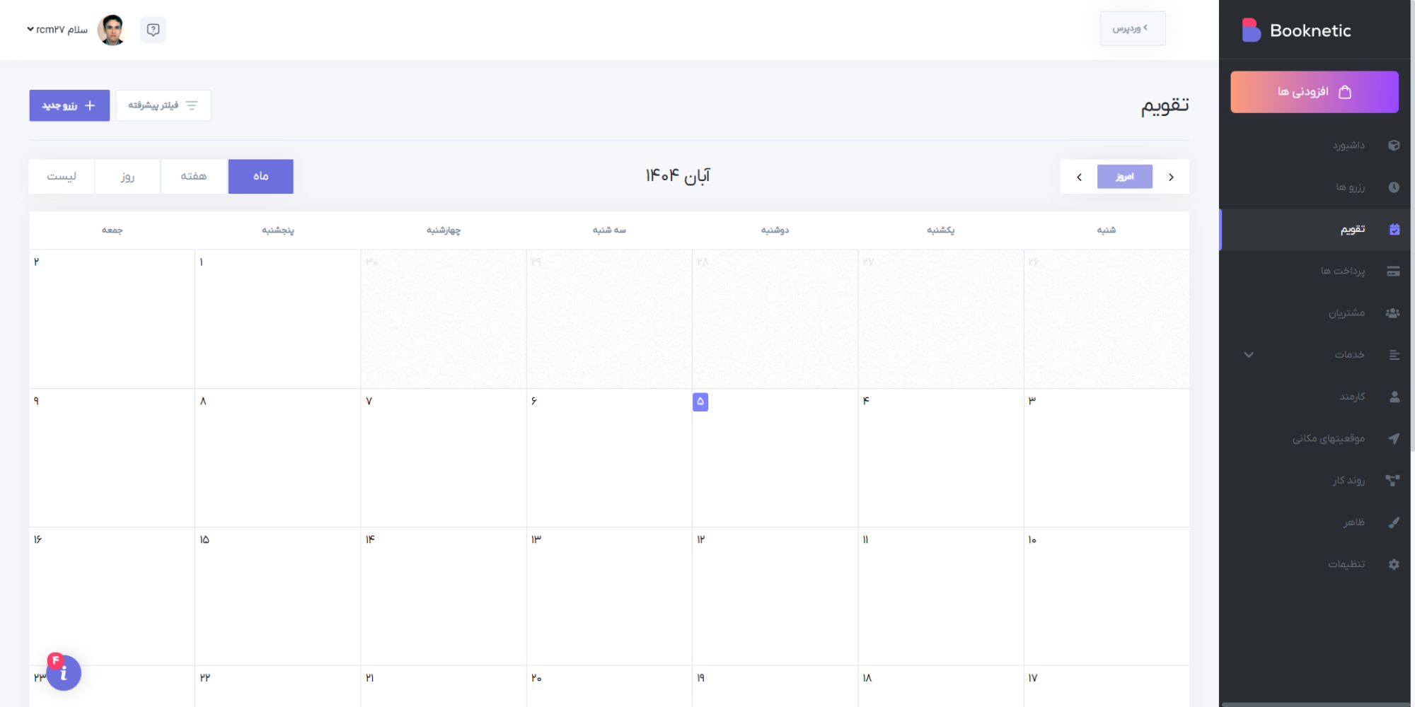 افزونه بوکنتیک با تقویم شمسی در تمام بخش ها ، این امکان را فراهم می کند تا مدیریت سیستم رزرو آسان و لذت بخش تر شود.