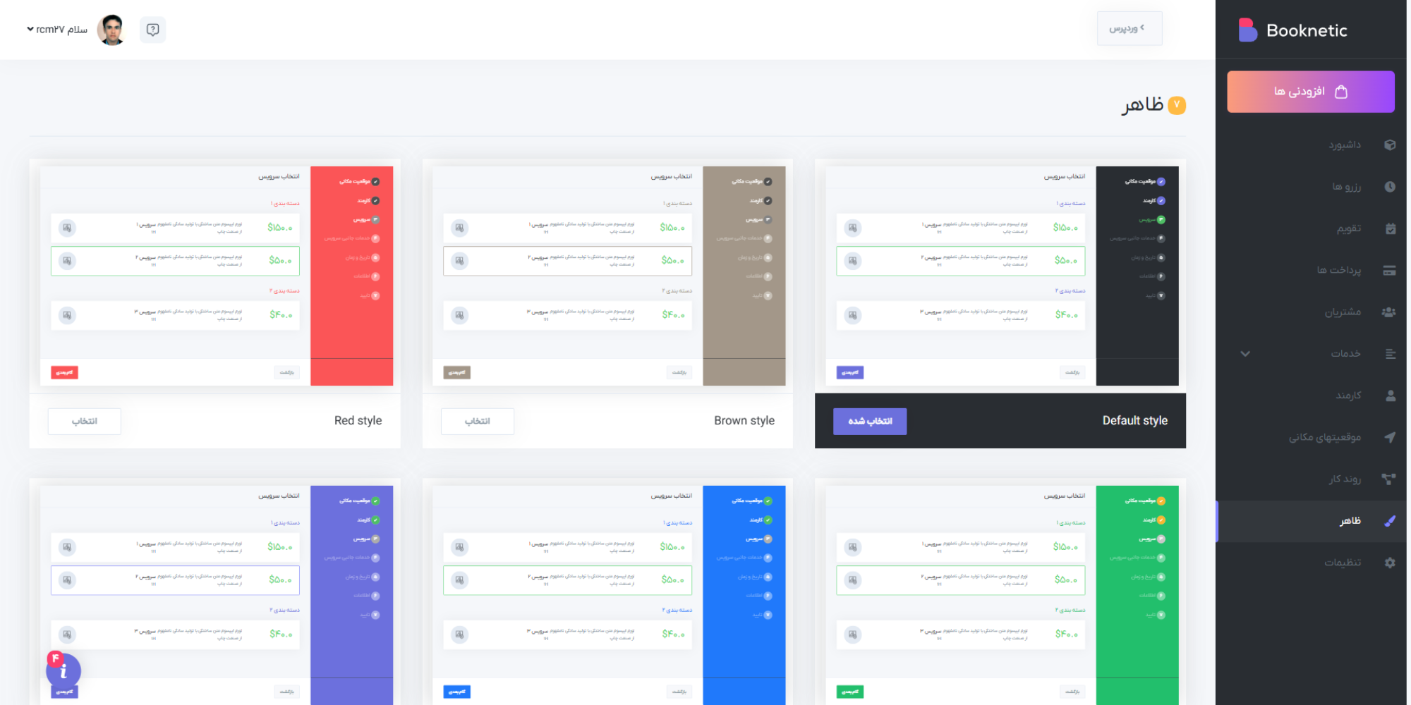 در حالی که ظاهر، طراحی و انتخاب رنگ، یک امر معمولی به نظر می رسد، اما برای هر سازمانی اهمیت حیاتی دارند. افزونه رزرو و نوبت دهی بوکنتیک طیف گسترده ای از گزینه های رنگی را در اختیار کاربران خود قرار می دهد. طراحی قابل سفارشی سازی افزونه بوکنتیک به شما این امکان را می دهد که رنگ های مناسب برای کسب و کار خود را انتخاب کنید.